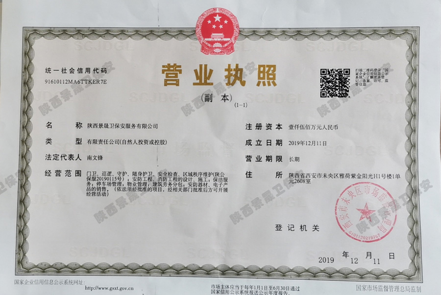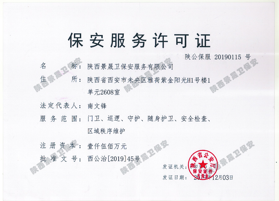 陜西景晟衛(wèi)保安服務(wù)有限公司